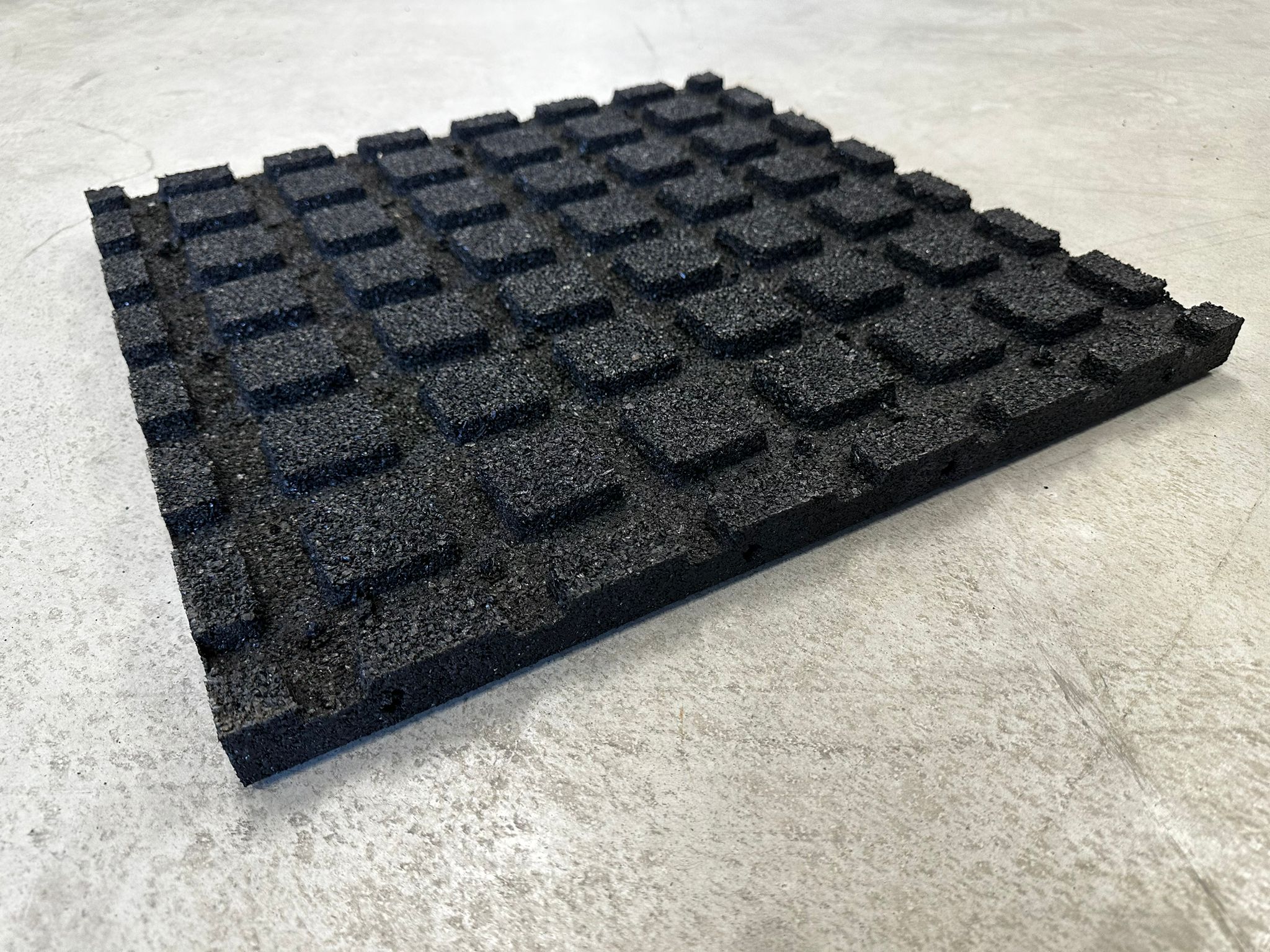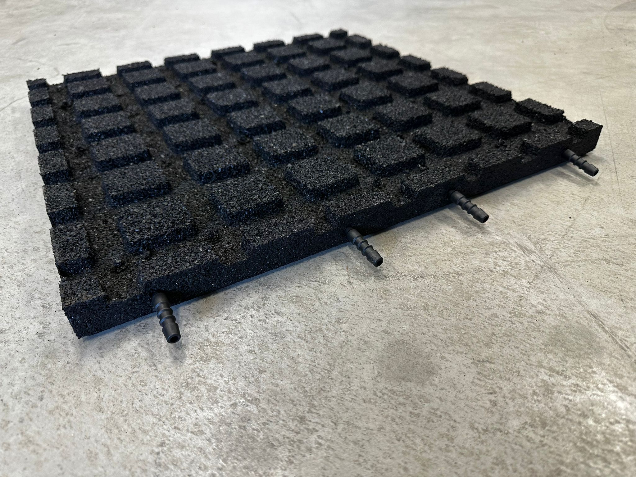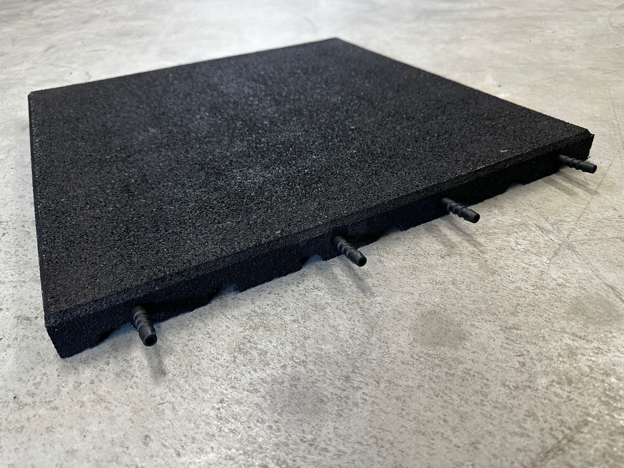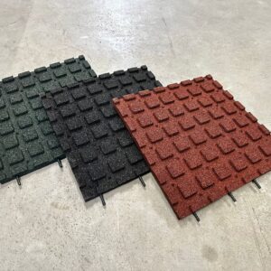 Die Gummifliese “EcoFlex” im Format 50x50x3cm, ist in 3 Farben, schwarz / rot oder grün erhältlich – inkl Verbinder/Pins