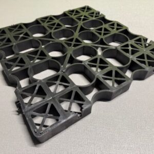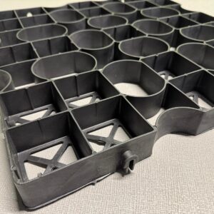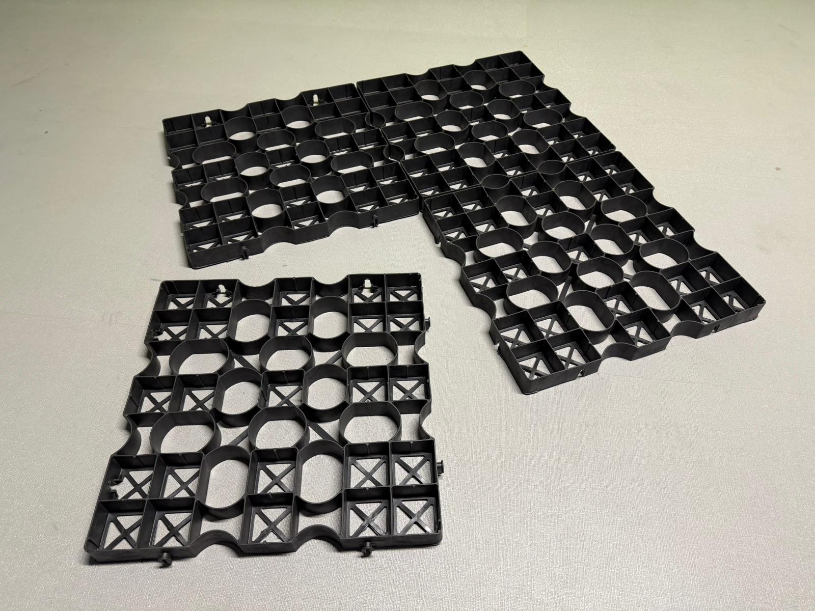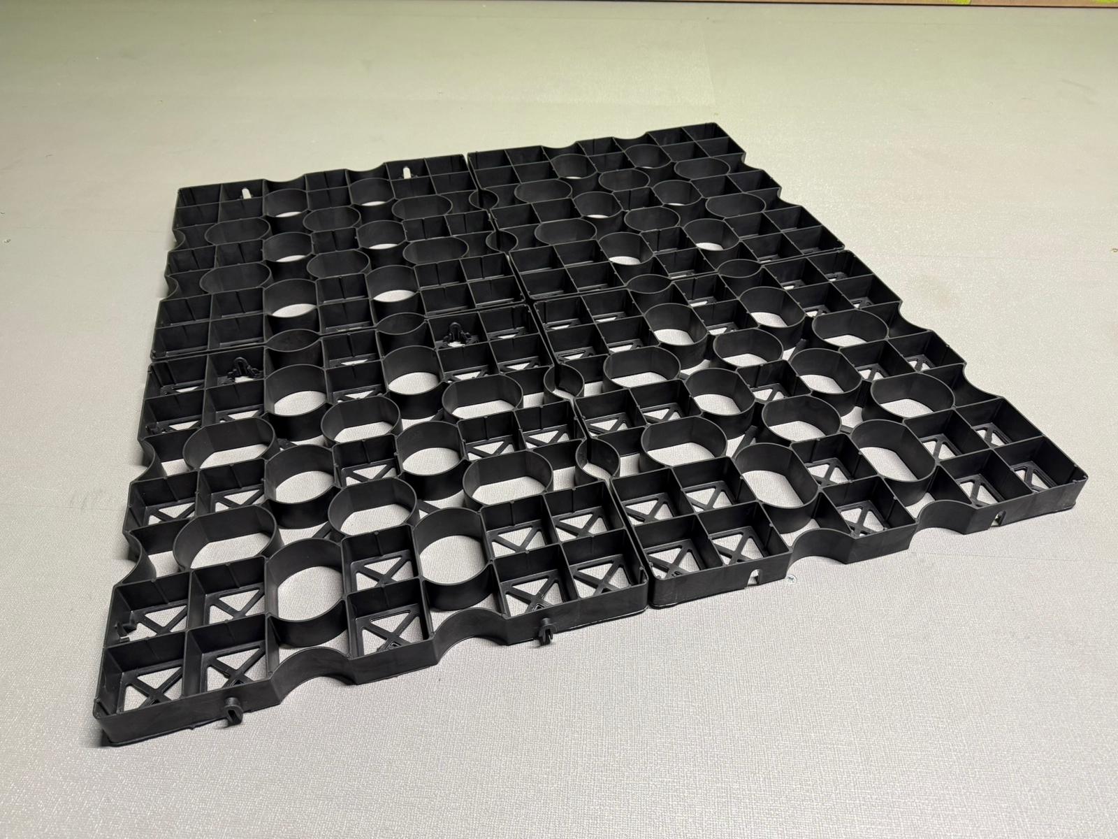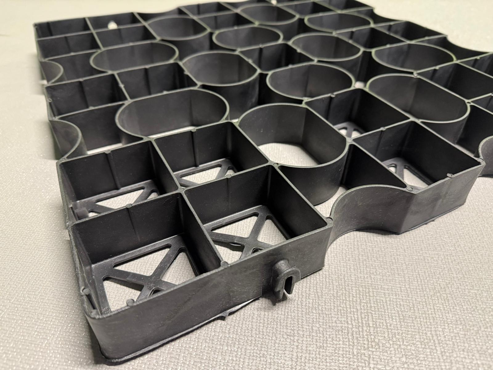 Eine vollständig recycelbare, halboffene Pflasterplatte, ideal für Rasen- und Split- o.ä. Anwendungen.