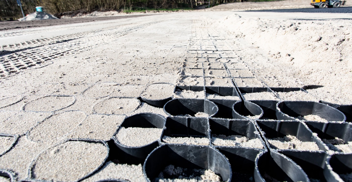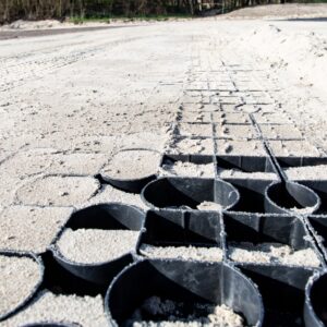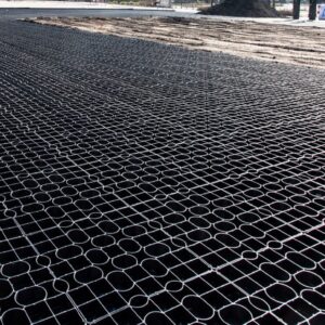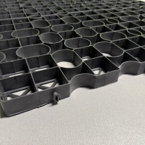 Die Boden Stabilisierungsplatte PRO40 verhindert in Kombination mit einem Vlies/Anti-Wurzel-Gewebe, dass sich der Kies verschiebt oder mit der Unterschicht vermischt. Bei der Verwendung als Rasenfläche verhindert die Platte Spurrillenbildung durch Verkehrslasten.