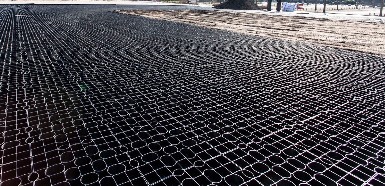 Die extrem starken Kunststoffplatten sind sehr leicht und sorgen verfüllt für eine TOP Bodenstabilität. Durch das einzigartige, ineinandergreifende Verbindungssystem lassen sich die Platten einfach und schnell verlegen.