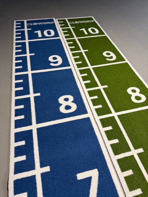 Erhältlich in Grün, Rot, Blau oder Schwartz mit weißen Zahlen & Linien mit originalem Clawgrip-Logo. Die beste Qualität, sofort verfügbar, umweltfreundlich hergestellt und zu 100% recycelbar, frostbeständig, kann direkt auf Ihrem vorhandenen (flachen) Unterboden oder auf dem Shockpad-Unterboden, Sportplatz, Übungsfeld oder Spielplatz platziert werden.