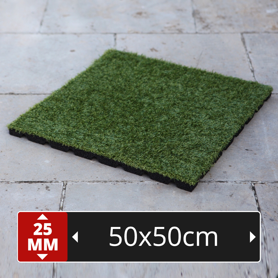 Die beste Qualität, sofort verfügbar, umweltfreundlich hergestellt und 100% recycelbar, frostbeständig, kann direkt auf Ihrer vorhandenen Terrasse, Balkon, Spielplatz für die Kinder platziert werden. Ein wesentlicher zusätzlicher Vorteil ist, dass sie direkt auf PVC-, Beton-, Zink-, EPDM- oder Bitumendächern installiert werden können. Mit anderen Worten, eine Unterzahlung ist in vielen Fällen nicht erforderlich. Das macht diese Grasfliesen auch ideal für eine Dachterrasse oder Gehwege auf Dächern. Unsere Gummifliesen haben ein Gewicht von nur ca. 18,95 kg / m², daher auch sicherer durch die fallbrechende Wirkung des Gummis! Die Grasfliesen sind auch in einer Dicke von 3 cm mit Stift & Loch-Verbindung erhältlich (Zapfen, um die Fliesen zusammenzuhalten), damit das Ganze sauber und fest verlegt werden kann. Die Zapfen sind dann Standard mit 4 Stück pro Fliese.