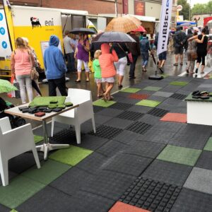Unsere Dach- und Terrassenfliesen sind sowohl für den professionellen als auch für den privaten Markt geeignet. Die Gummifliesen sind feuchtigkeitsdurchlässig und trocknen schnell, so dass Algen und Moose kaum eine Chance haben zu wachsen.
