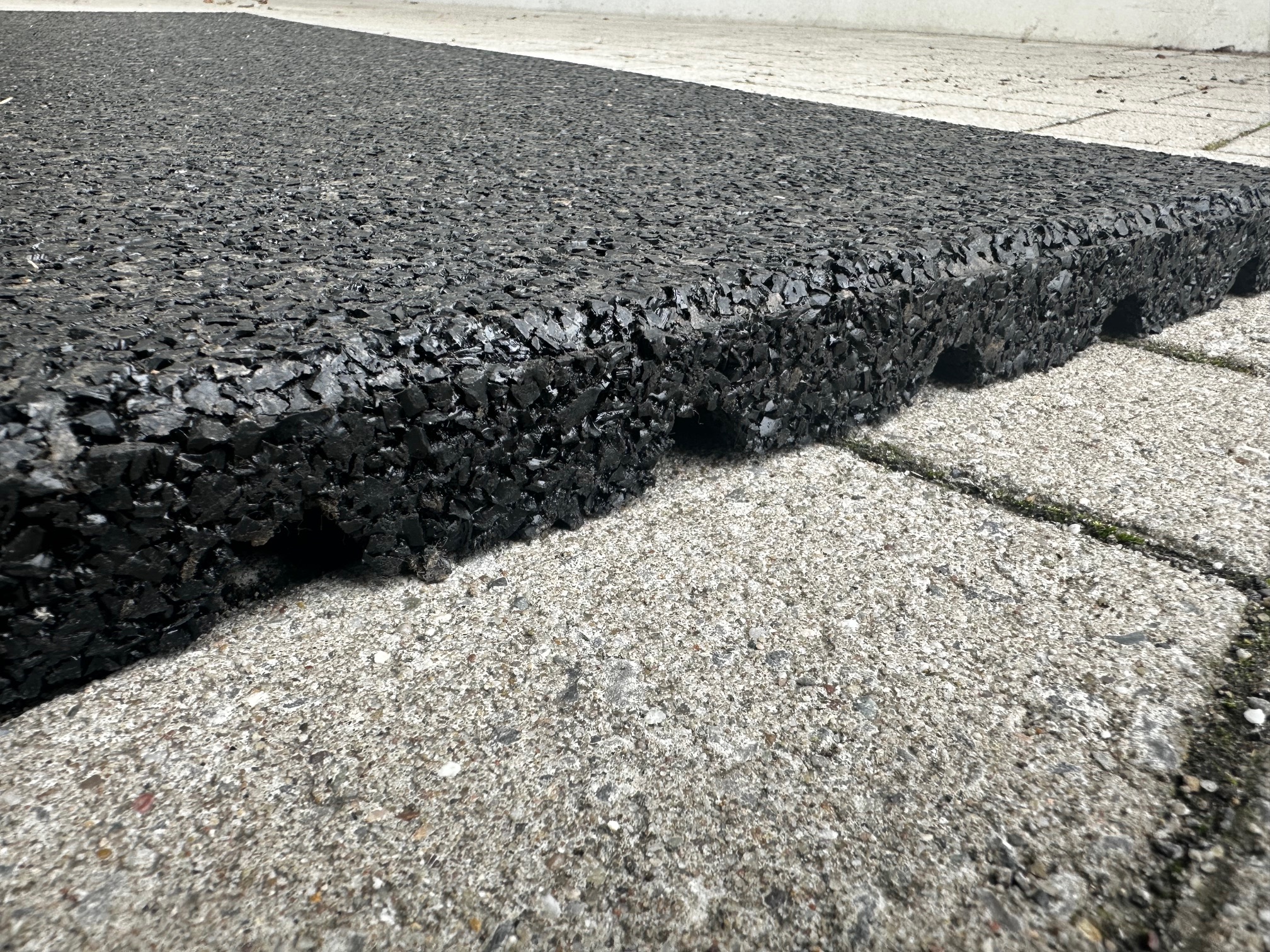 Die zusätzlichen Vorteile sind, dass die stabilen Fliesen isolierend, schallabsorbierend und elastisch sind. Mit einer Wasserdurchlässigkeit mit einer 4cm dicken Fliese von 960mm/Stunde.