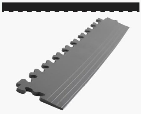 Seitenrand bzw. Rampe für unsere CLAWGRIP PVC-Bodenfiesen “IndustryEco”. Nutzbar als gerader Abschluss, sowie Aufgeh- oder Auffahrrampe um Stolpern etc. zu vermeiden. Die geschlossene Struktur der Unterseite dieser PVC-Fliesen sorgt für eine extrem gute Stabilität.